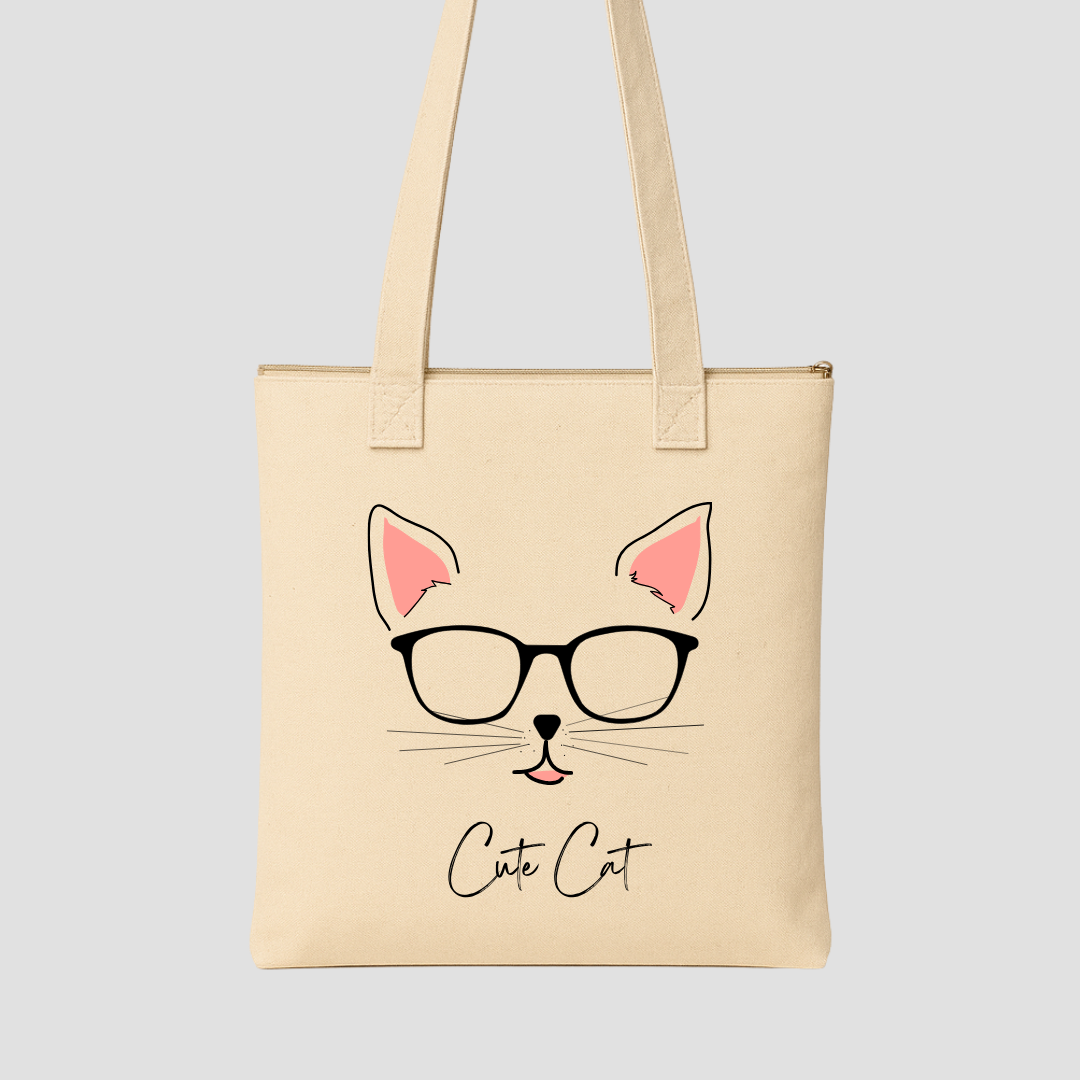 Smart, stylish, and just a little sassy — this adorable “Cute Cat” tote is made for book hauls, grocery runs, school days, and coffee breaks. With its glasses-wearing kitty charm, it’s the perfect mix of brains and beauty.
